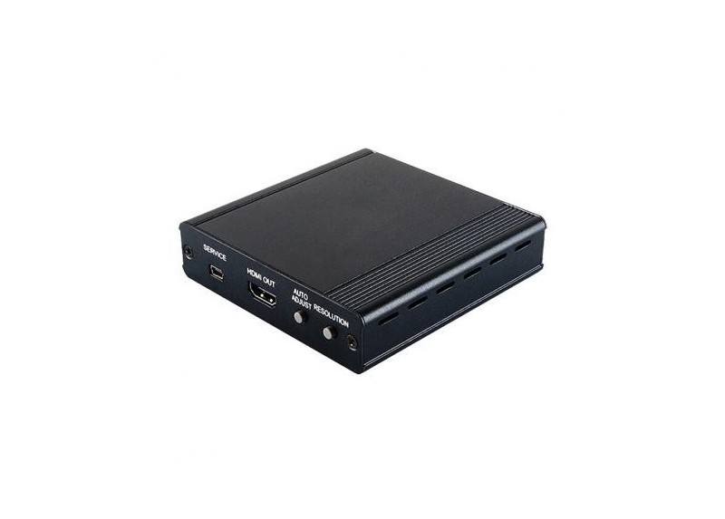 CP-304 è un Video Scaler da VGA a HDMI ed è stato progettato per scalare un segnale video analogico da una sorgente PC ad un uscita digitale HDMI in una vasta gamma di risoluzioni HD e PC (fino a 1080p e WUXGA RB). Oltre a cambiare le dimensioni del video, il CP-304 consente di convertire un ingresso audio stereo analogico in un segnale digitale embeddato LPCM a 2 canali sull'uscita HDMI. Questo modulo consente all'utente di selezionare una vasta gamma di risoluzioni di uscita ed è dotato di una funzione di regolazione automatica per ottimizzare la qualità delle immagini. Ingressi 1x VGA (D-sub 15-pin), 1x 3.5 mm Mini-jack, uscite 1x HDMI, risoluzioni ingressofino a WUXGA (1920x1200 at 60RB), risoluzioni uscita fino a 1080p & WUXGA (1920x1200 at 60RB), Power Supply 5 V/2.6 A DC, dimensioni 102x102x25 mm, peso 244 g, case in alluminio nero, consumo 4,6 W.